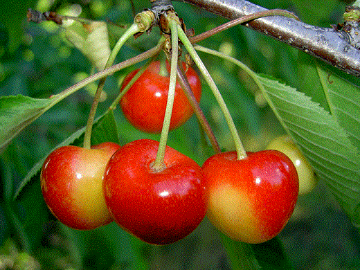 Plod je srednjekrupan do krupan (prosečne mase 6,5-7,0 g), zatupastosrcastog oblika (prosečne visine 20,3 mm, širine 23,3 mm i debljine 20,3 mm). Pokožica je u osnovi sedefastožute boje sa dopunskom crvenom, tako da ceo plod ima rumenu boju. Pokožica je nežna, meka i glatka. Šav nije izražen. Meso ploda je beličastožute boje, poluhrskavo i sočno, slatko-nakiselog ukusa i prijatne arome. Sok je bezbojan. Sadrži oko 15% rastvorljivih suvih materija i 0,7% kiselina. Koštica je sitna, okruglastog oblika, proširena na bokovima, i u ukupnoj masi ploda učestvuje sa oko 5%. Peteljka je srednje duga, tanka, zelene boje i smeštena u plitko udubljenje. Plodovi su srednjeosetljivi na pucanje.