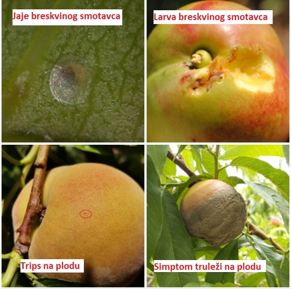 U fazama sazrevanja plodovi bresaka i nektarina su osetljivi na infekciju od strane gljiva prouzrokovača različitih vrsta truleži ploda (Monilinia spp.). U zasadima se uočavaju prisutni plodovi sa simptomima truleži kao posledica veoma povoljnih vremenskih uslova (česte padavine i povoljne temperature) za razvoj ovih patogena u prethodnom periodu. S obzirom da se, u zavisnosti od regiona najavljuju padavine, koje mogu stvoriti nove povoljne uslove za infekcije ovim patogenima, preporučuje se primena nekog od registrovanih fungicida: