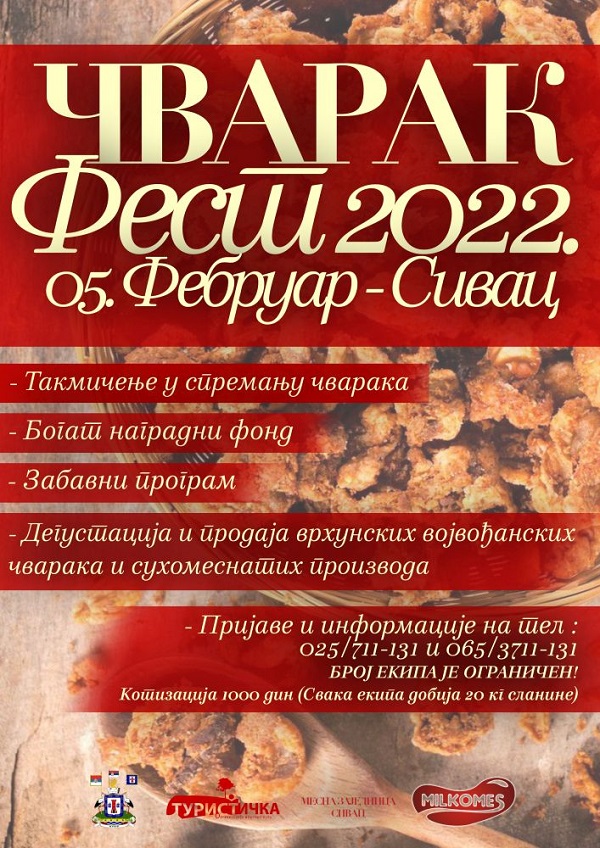 Sada već tradicionalni Čvarak fest u Sivcu, ove godine biće održan 5. februaru. Organizatori festivala su i ove godine Opština Kula, Turistička organizacija Kula i MZ Sivac, dok je prijatelj festivala mesara Milkomes.