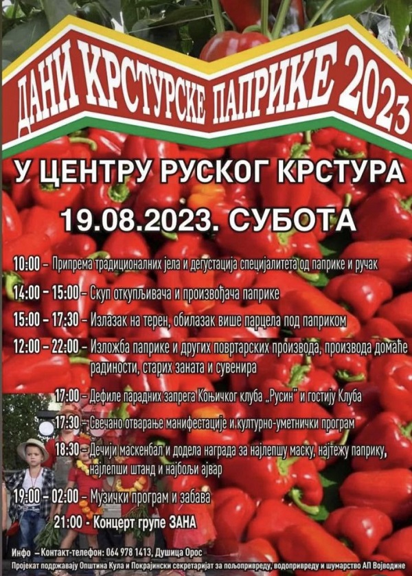 U subotu, 19. avgusta, u centru Ruskog Krstura, biće održana manifestacija „Dani krsturske paprike 2023“.