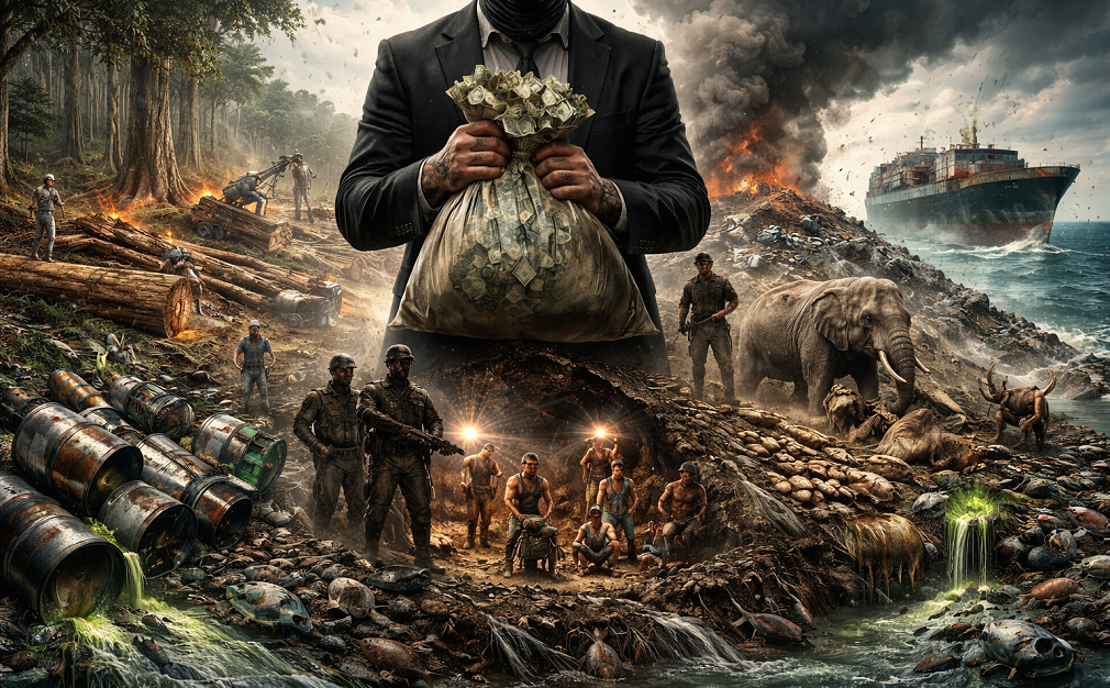 Reč je o pljačkanju rudnih bogatstava, sirovina, krivolovu, trovanju voda, ilegalnoj seči šuma ili ilegalnom odlaganju otpada. Posledice su uništavanje egzistencije ljudi, teranje ljudi u moderno ropstvo, uništavanje prirode, podsticanje klimatskih promena i efekti koji izazivaju rak.