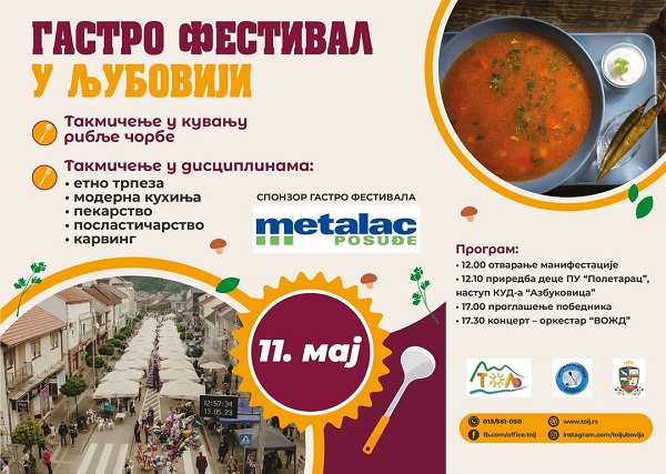U Ljuboviji će u subotu, 11. maja, biti održan Gastro festival, druga po veličini manifestacija u ovoj opštini.