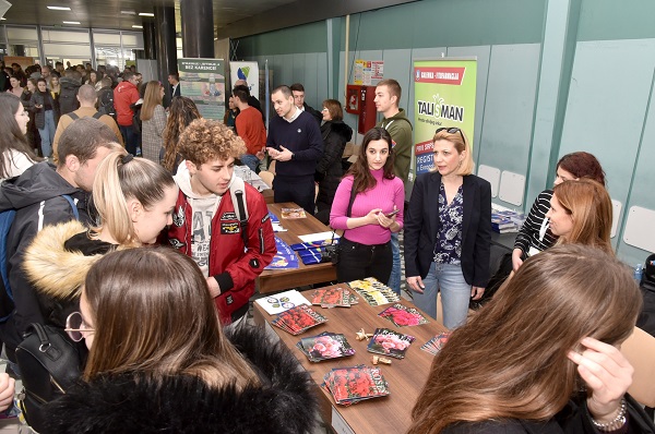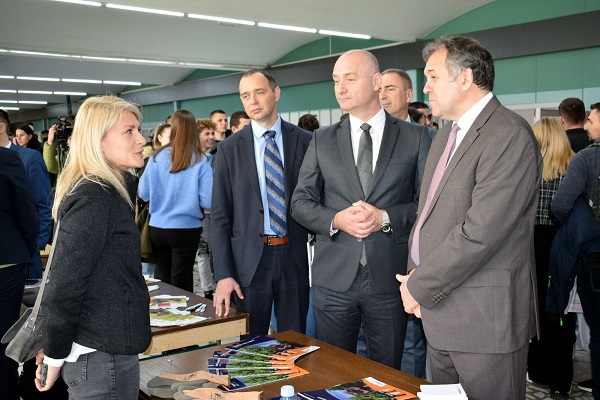 Ivanišević i Tica su u pratnji profesora i saradnika obišli izlagače, kojih je preko četrdeset, što ovaj sajam čini najvećom manifestacijom namenjenom zapošljavanju studenata na Univerzitetu u Novom Sadu.