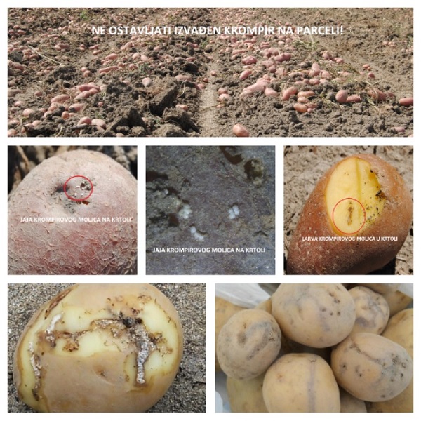 – što pre vađenje i skladištenje krtola, odmah nakon propadanja cime. Nikako ne treba ostavljati izoran krompir na parceli tokom noći ili izvađen krompir u dvorištima jer su na taj način krtole direktno izložene napadu moljca