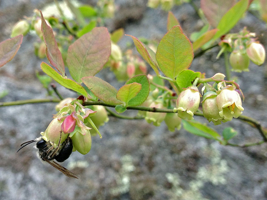 Medonosne pčele nisu dovoljno efikasne kod oprašivanja borovnice jer one lete manje kad su temperature niže, dan oblačan ili je brzina vetra velika.