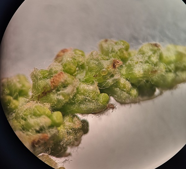 Vizuelnim pregledom mladih cvasti, uočeno je prisustvo jaja ove štetočine u različitim fazama embrionalnog razvoja.