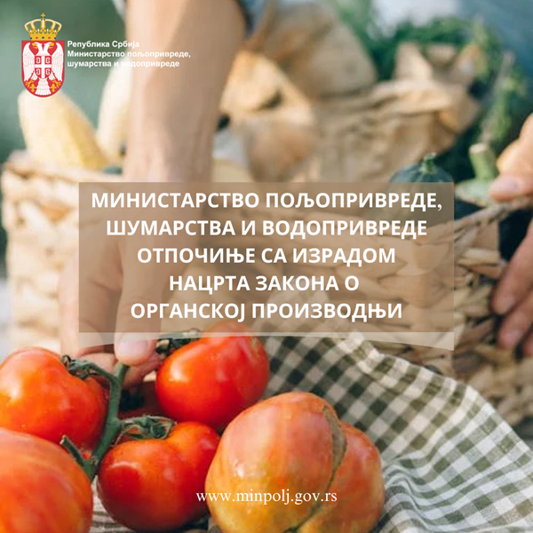 Ministarstvo poljoprivrede, šumarstva i vodoprivrede izdalo je saopštenje kojim obaveštava javnost o tome da otpočinje izrada Nacrta zakona o organskoj proizvodnji.