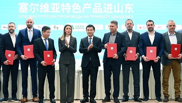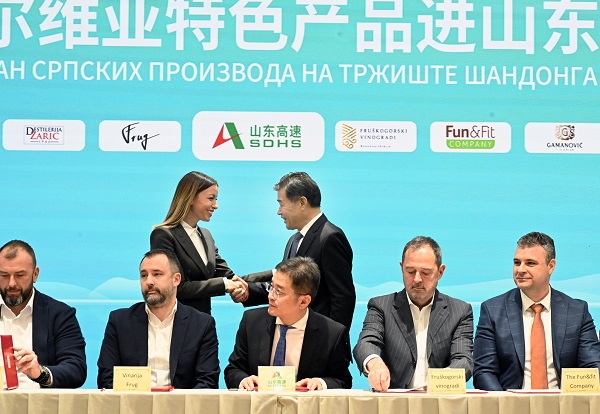 Sporazum o plasmanu srpskih proizvoda na tržište kineske provincije Šandong potpisali su u Beogradu kompanija Shandong Hi-Speed i predstavnici 16 srpskih proizvođača vina, a svečanom potpisivanju i predstavljanju proizvoda prisustvovala je ministarka privrede Adrijana Mesarović koja je najavila da će za oko dve nedelje posetiti više kineskih provincija, uključijući i Šandong.