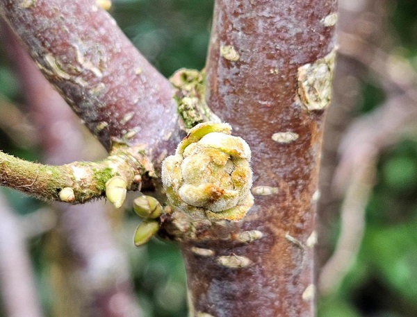 Na vršnim mladarima registrovani su deformisani, uvećani i nabubreli pupoljci, koji se jasno razlikuju od zdravih. Pregledom takvih pupoljaka pod uvećanjem, potvrđeno je prisustvo larvi unutar njih.