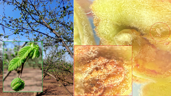 Zasadi leske se trenutno nalaze u fazi razvoja listova, a pregledom zasada poslednjih nedelja uočeno je prisustvo pupoljaka infestiranih eriofidnom grinjom leske (grinjom velikih pupoljaka).