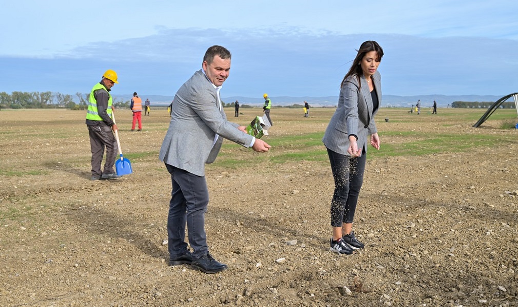 Formiranje travnjaka je izvršeno sejanjem semena u količinama 100 kilograma po hektaru. Na simboličan način u sejanju trave učešće su uzeli i ministarka Vujović i predsednik Ljubišić.