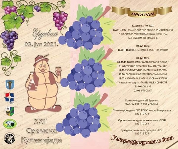 Pod motom „U zagrljaju kulena i vina“ 3. jula ove godine u Erdeviku, u organizaciji PKS RPK Sremskog upravnog okruga, Opštine Šid i MZ Erdevik, biće održana 22. Sremska kulenijada.