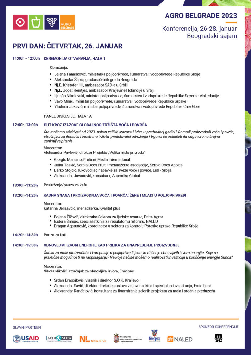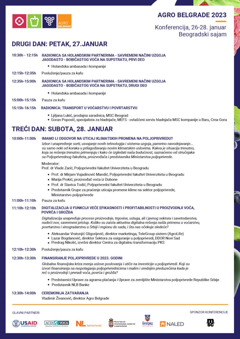 Sajam voćarstva, povrtarstva i vinogradarstva „Agro Belgrade“ biće održan na Beogradskom sajmu od 26. do 28. januara.