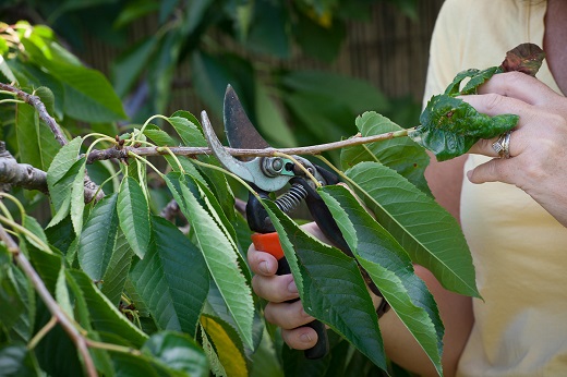Sredina leta idealna je i za obavljanje, takozvane, sanacione rezidbe u trešnjicima u kojima je prisutna zaraza bakterijskog raka kore (prouzrokovač je bakterija Pseudomonas syringae) i infektivnog sušenja voćaka (prouzrokovač je gljiva Leucostoma cinctum). Ovi patogeni često su prisutni u trešnjicima usled dejstva raznih abiotičkih i antropogenih faktora (pojave izmrzlina tkiva drveta u rakljama pod dejstvom mraza, preseci načinjeni ranom rezidbom na zrelo, nedezinfikovan alat za rezanje, oštećenja na deblu nastala radom freza sa pipalicom…). Zaštita zasada bakarnim preparatima u vreme opadanja lišća, kad je naročito povećana populacija patogena u trešnjicima, smanjuje infekcioni potencijal ali ne eliminiše mogućnost pojave primarnih infekcija.