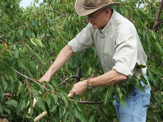 Izvođenje poznoletnje rezidbe obolelih stabala odstranjivanjem obolelih delova krošnje, grana i grančica, kao i njihovo iznošenje iz trešnjika i spaljivanje, obavezna su mera u cilju sprečavanja širenja daljih infekcija. U uslovima humidnije klime, poput one na istočnoj obali SAD, fitopatolozi preporučuju da se u zasadima trešnje u kojima su pomenuti patogeni već prisutni obolele grane orezuju u dva koraka. Najpre se prave rezovi na „ružni patrljak“, već ustaljen pomotehnički zahvat u borbi protiv bakterijske plamenjače jabučastog voća (prouzrokovač je Erwinia amylovora). Cilj ovakvog zahvata je da se tokom naredne vegetacije patogen, koji je inače prisutan u sprovodnim tkivima obolelih grana, lokalizuje samo u čepovima i slabim prirastima izniklim iz njih posle rezidbe, a svi oni će takođe biti odstranjeni rezom u drugom koraku. Prednost ovako izvedene rezidbe „na čep“ je što se infekcija drži dalje od stožine, s obzirom na to da se patogeni dalje šire kroz biljku putem biljnog soka i cirkulacijom kroz ksilem. Ukoliko se bolest raširi do sprovodnih sudova debla (što se manifestuje pojavom smolotočine na više mesta na deblu), stablo trešnje je nemoguće spasiti od propadanja u narednom periodu.